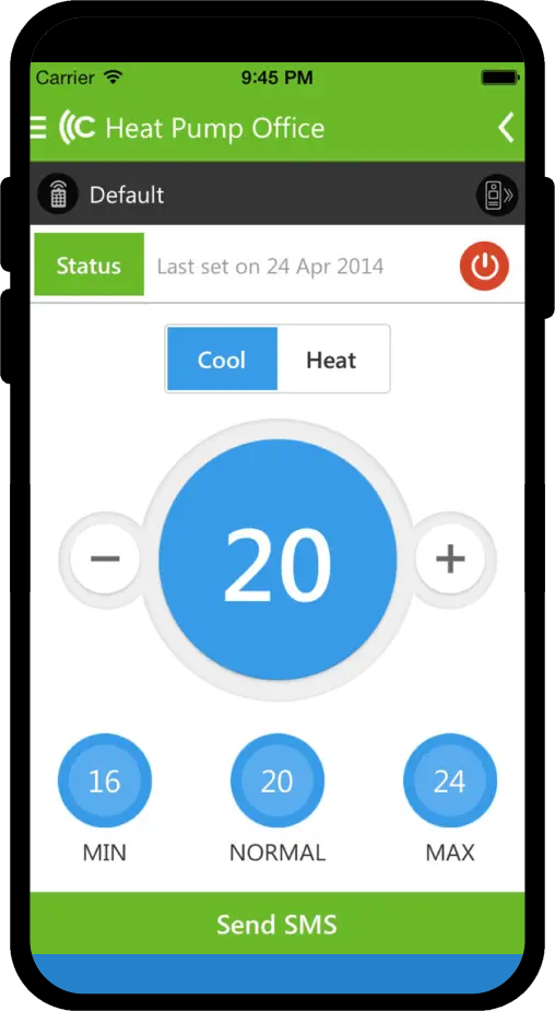 Med CTSmall kan du fjernbetjene din varmepumpe med SMS eller App på 4G nettet.
